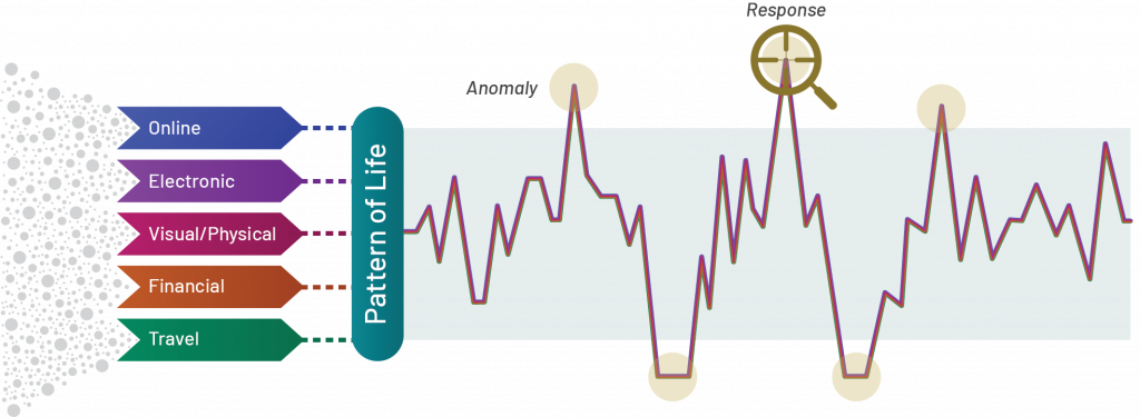 Figure 1. Ridgeline International’s Pattern of Life Anomaly Response (POLARTM) Model illustrates the conditions under which deviations from the patterns generated in commercial data can trigger adversary response.